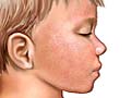 - A mild rash that starts on the face and spreads to the neck, the chest, and the rest of the body.