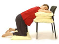 a birthing chair, stool, or bed. You may find that certain positions are more comfortable than others during the pushing stage. Speak to your doctor or midwife about different birthing positions before your labor begins. - Kneeling, getting down on your hands and knees, or leaning onto a birthing ball may help to take pressure off your back. This position might also help with back labor.
