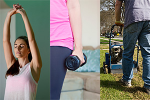 work on all three areas without leaving home. If you have heart problems or other health issues, or if you have not been active for a long time, check with